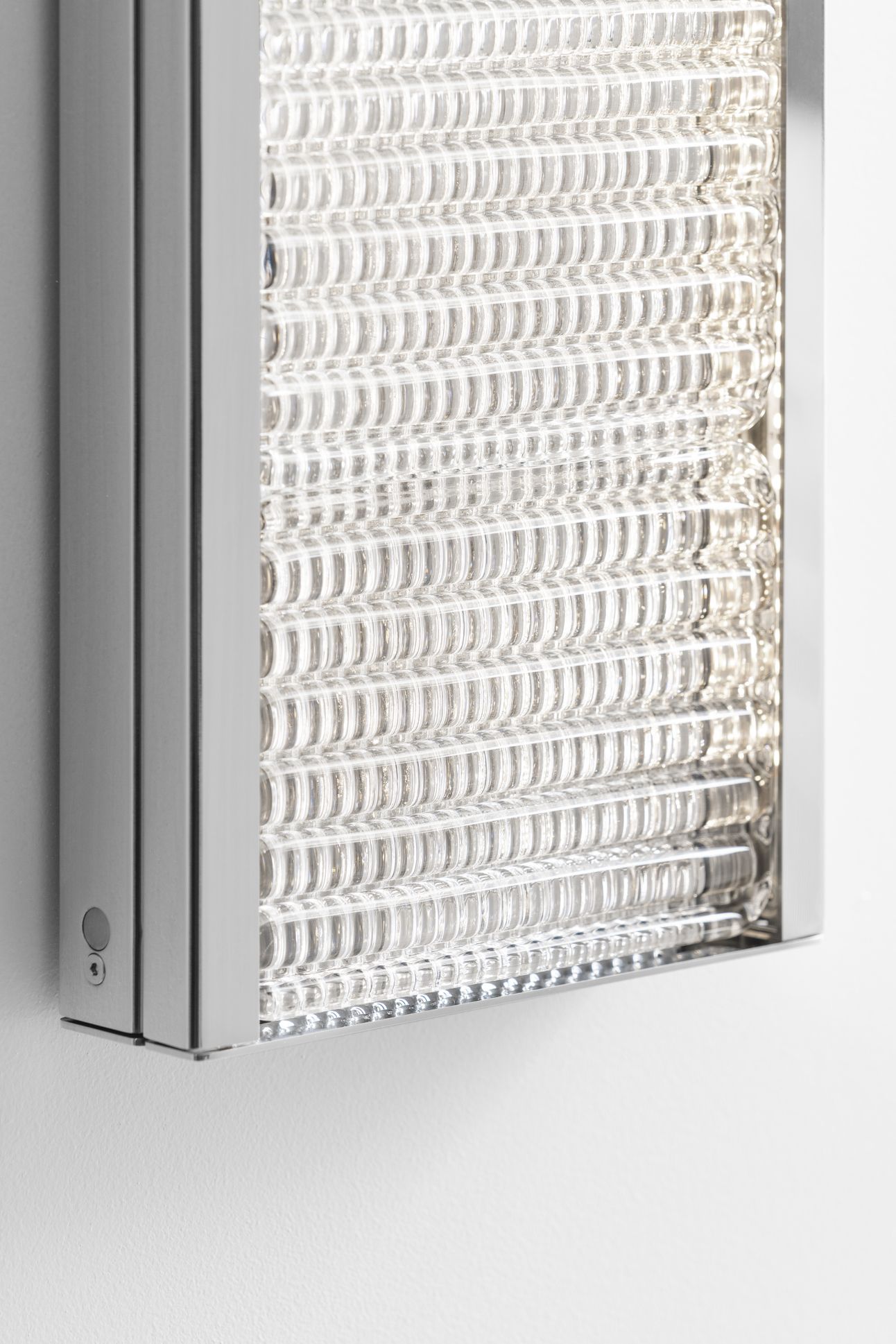 Featuring textured glass tiles and a stainless steel structure, SISTEMA represents a modern twist on 1930s Italian design.